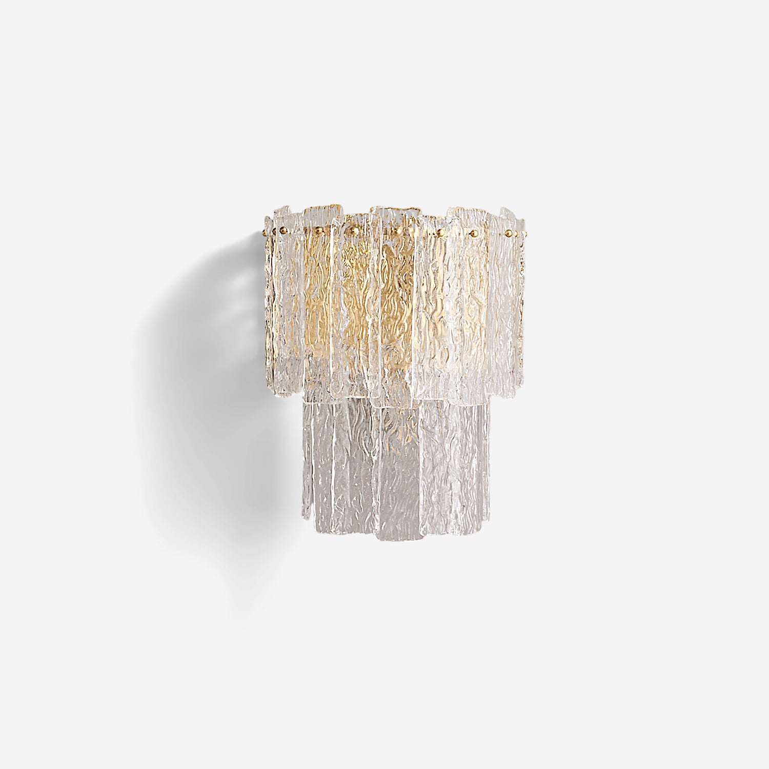 The Almeria wall light is a lighting piece that seamlessly blends naturalistic aesthetics with sculptural art. Its design seems inspired by a poetic capture of the primitive, irregular forms found in nature, such as glaciers, crystals, and lava, aiming to bring the unique interplay of nature's textures and light into interior spaces.